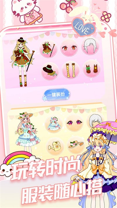 ·点击衣柜中的衣服,轻松更换时尚少女的穿着,支持细节调整和配饰搭配,快来一起打造专属造型