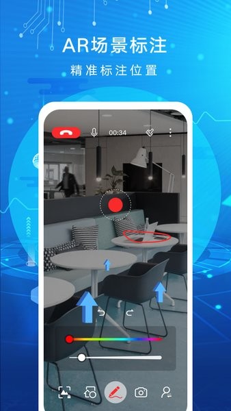 1、集视频通话、屏幕共享、AR标注于一体,满足各类远程协作需求,打造全方位的协同办公解决方案;