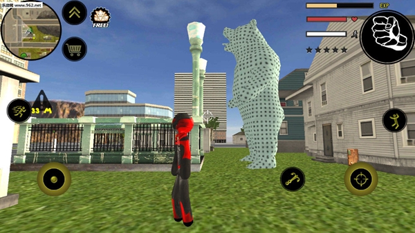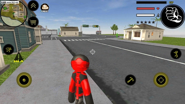 左侧移动、加速,右侧绳索,攻击(跳跃),跳跃,右上侧的武器更换以及血量、经验的显示都实时更新,一览无遗,凭借着大家自由的玩法,与其他帮派的人物进行交火,期间杀人能够获得经验,杀多了会产生星级,警察和其他附近角色会特殊照顾你对你展开火热的进攻,而如何存活,如何将其他人物击杀则是你所需要完成的任务。建议新手玩家先熟悉基本操作,在安全区域练习各种动作组合,掌握绳索的使用技巧,这对后续的游戏体验至关重要。
