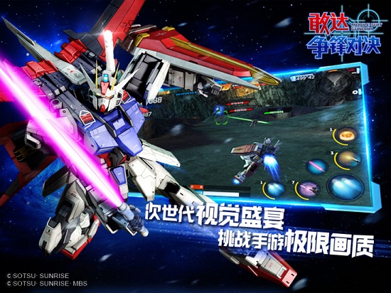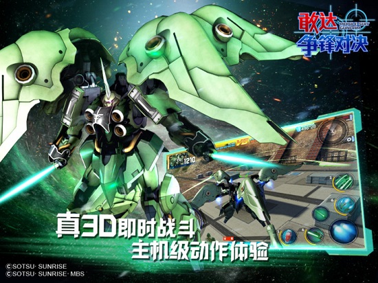 1.采用真实比例3D建模技术,从机体到场景都力求还原动画设定,精细的材质表现和动态光影效果,让玩家仿佛真的置身于敢达驾驶舱内,体验热血沸腾的战场厮杀。