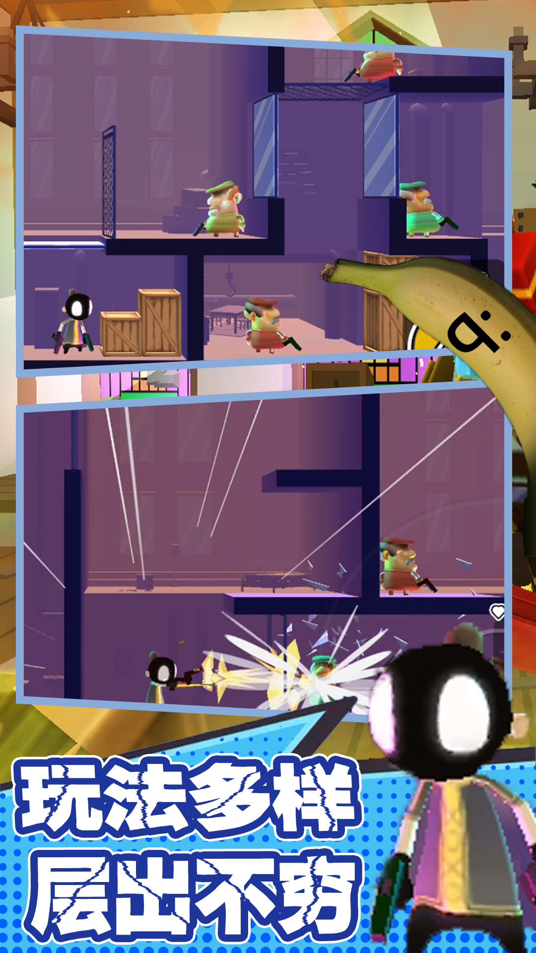 这是一款令人热血沸腾的动作射击游戏。玩家将化身为佩德罗先生,为了给家人复仇,在神秘香蕉的协助下踏上了一条充满危险与挑战的复仇之路。游戏剧情扣人心弦,仇恨的火焰一旦点燃便永不熄灭。玩家需要通过完成一系列主线任务,最终击败终极BOSS,帮助佩德罗完成复仇大业。游戏采用非线性叙事方式,让玩家在战斗过程中逐步揭开故事背后的真相。精美的过场动画和丰富的角色对话,让整个游戏世界更加生动立体。