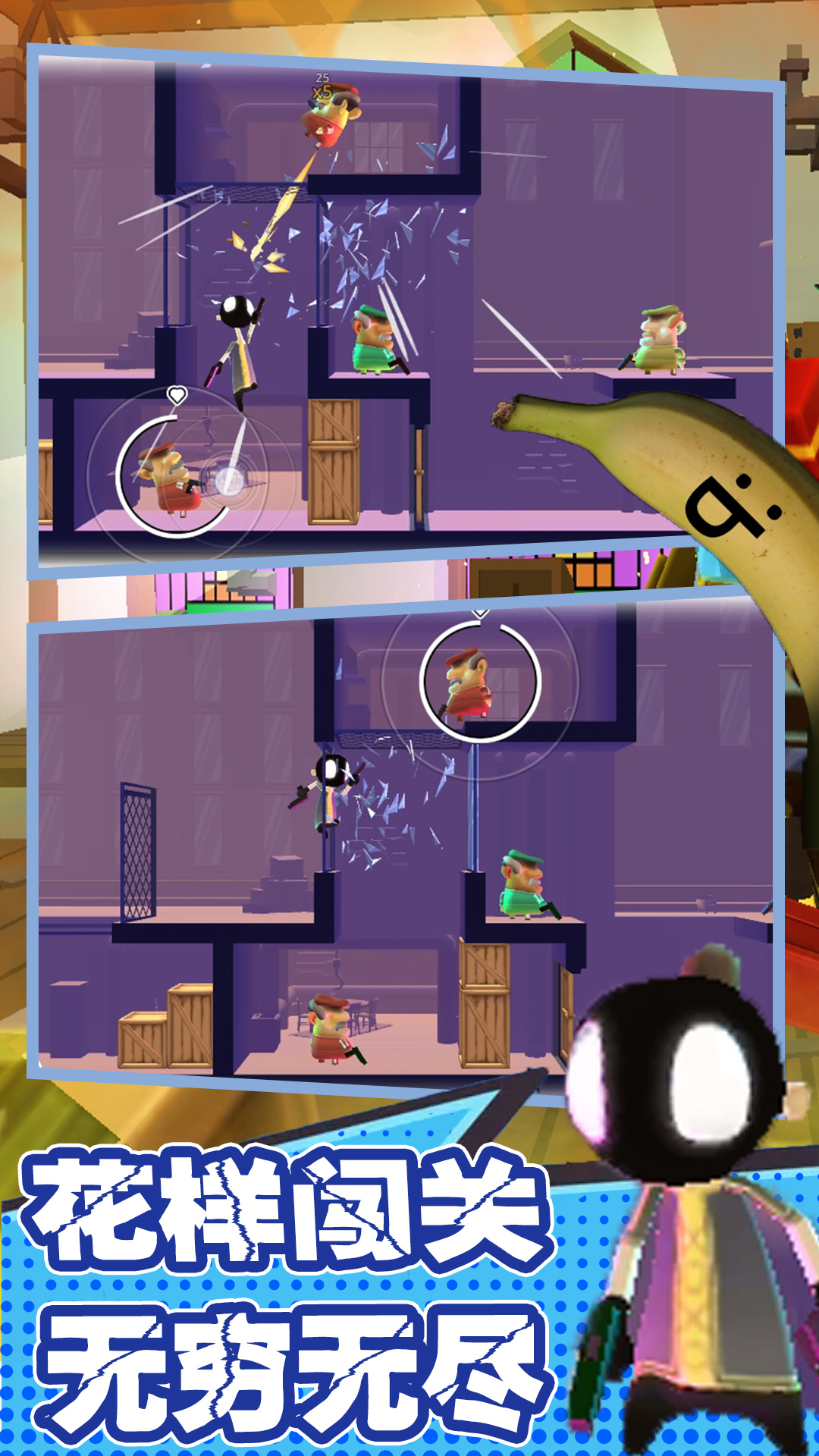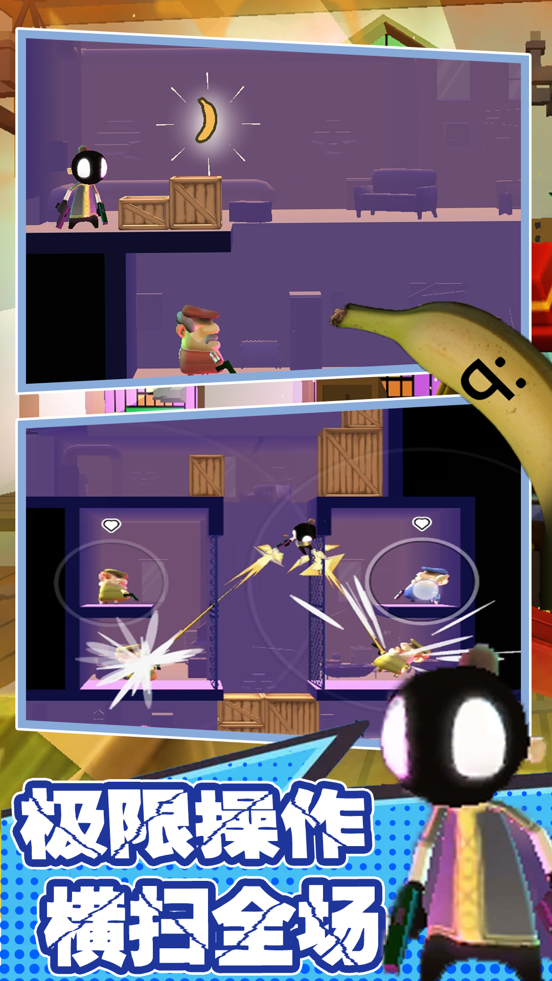 这款游戏在移动平台焕发新生,带领玩家开启一段融合了鲜血、子弹和香蕉的刺激冒险之旅!玩家可以自由选择移动方式,无论是步行、驾驶载具还是踩着滑板,都能在37个精心设计的关卡中闪转腾挪、火力全开。游戏鼓励玩家发挥创意,通过设计优雅的空中特技动作来获取高分,同时也提供了生存模式来考验玩家的极限操作能力。玩家需要熟练掌握手枪、机枪等多种武器的使用技巧,同时还要灵活运用各种动作特技来应对不同敌人。在跳跃过程中控制角色完成旋转等特技动作,既考验操作又极具娱乐性。游戏还提供了丰富的关卡模式,包括计时挑战、生存模式和Boss战等,满足不同玩家的游戏需求。