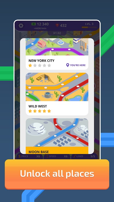 1、简单直观的操作方式,点击即可完成铺轨、购车等操作。轻松享受建设乐趣,无需复杂操作流程。游戏采用智能路径规划系统,自动计算最优线路,让玩家专注于战略决策。新手引导系统会分阶段介绍各项功能,确保平滑上手体验。