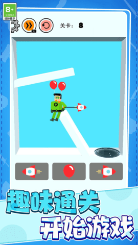 2、气球让你飘浮,火箭让你疾驰,合理使用是通关的关键。掌握道具特性很重要,比如气球适合跨越深坑,火箭则适合冲刺长距离。