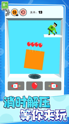 1、结合气球和火箭推进器,让你的火柴人飞得更高,跑得更快!独特的道具系统让游戏充满无限可能,气球能让你在空中优雅滑翔,火箭则带来闪电般的冲刺速度。