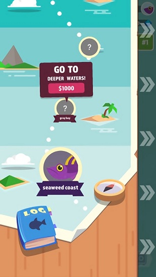3.随着游戏进度推进,玩家可以解锁更多神秘海域,探索传说中的龙鱼等稀有物种,完成图鉴收集。