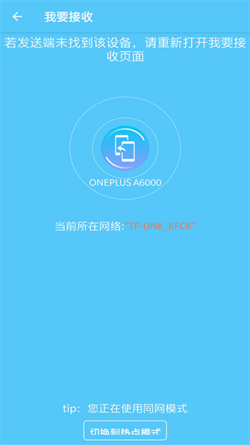 3、确认两部手机都连接到同一个Wi-Fi热点,这是建立稳定传输连接的基础条件,系统会实时显示连接状态。
