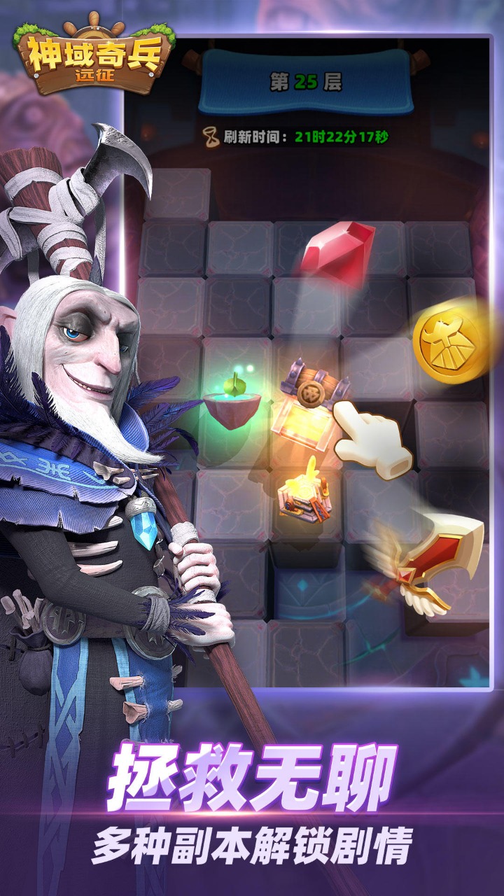《神域奇兵远征》是一款融合了卡牌收集与城建策略的Q版西方魔幻风格手游。游戏以精美的3D场景和独特的英雄角色为核心,玩家需要通过抽取不同阵营的英雄卡牌来组建强力阵容,同时经营自己的城池并收集资源来对抗强大的灾厄之主。游戏采用轻松放置的养成玩法,让玩家在休闲娱乐的同时也能体验到策略搭配的乐趣。无论是英雄培养、城池建设还是PVP竞技,都能带给玩家丰富的游戏体验。