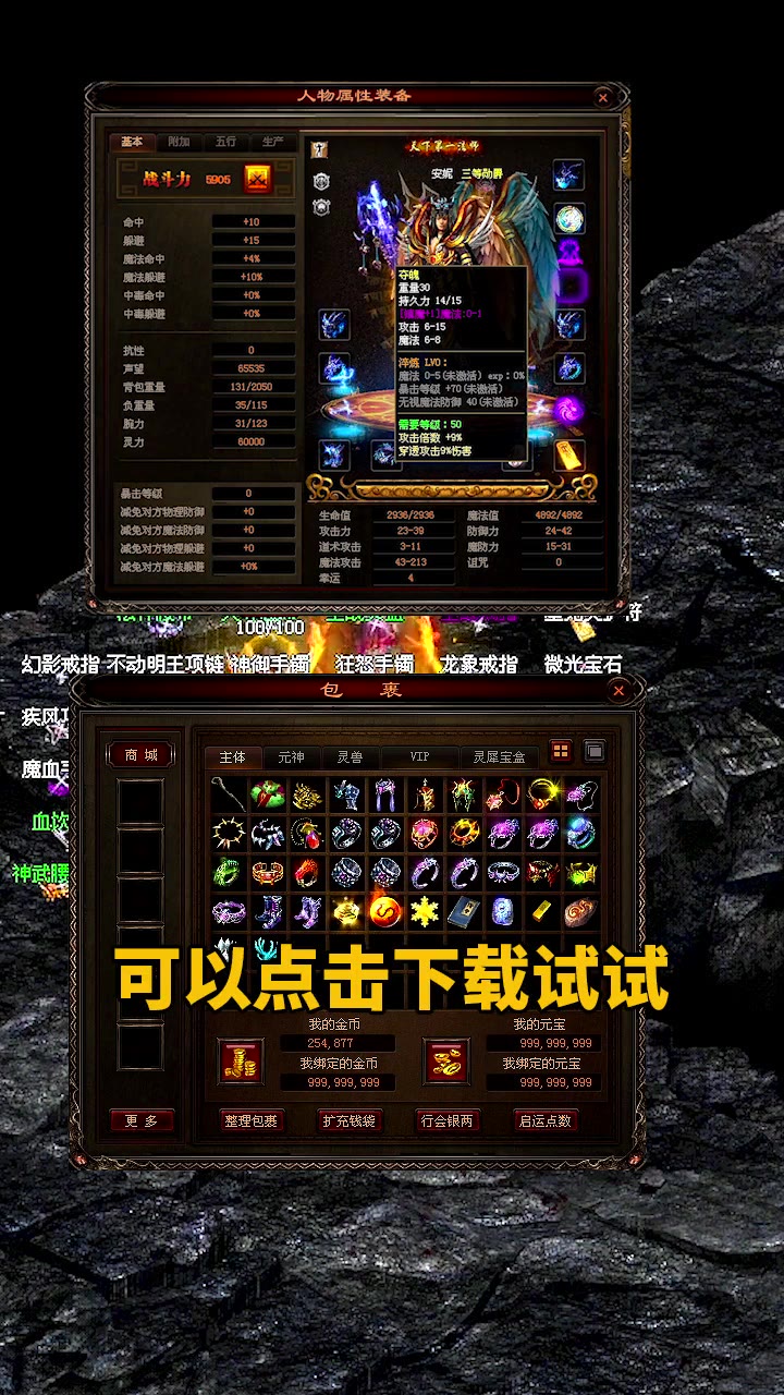 4、游戏福利丰厚,每日登录送海量元宝,上线即送满级VIP特权。独特的自由交易系统支持玩家自由打金,实现游戏内财富自由。