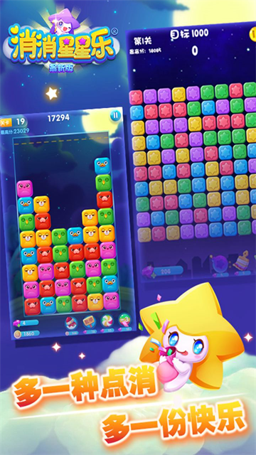 1.精美的画面:游戏采用鲜艳的色彩和可爱的星星造型,视觉效果出众,能够吸引玩家的注意力。每个星星都经过精心设计,消除时的动画效果也十分流畅自然。