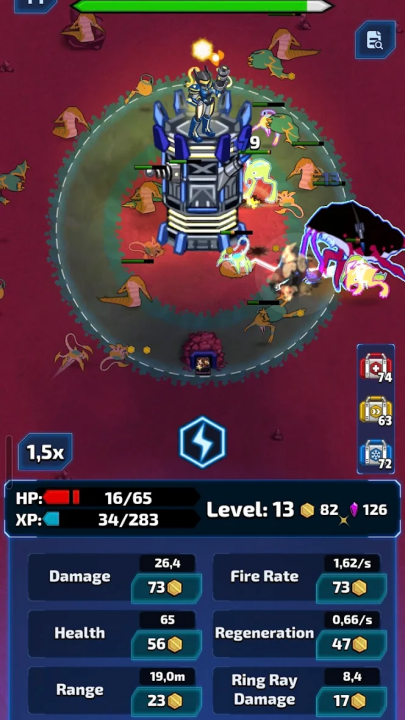 3、升级和自定义:增强你的炮塔并解锁强大的能力,以加强你的防御。游戏提供了深度的升级系统,每个防御塔都有多条升级路线可选,玩家可以根据自己的战术风格进行个性化定制。
