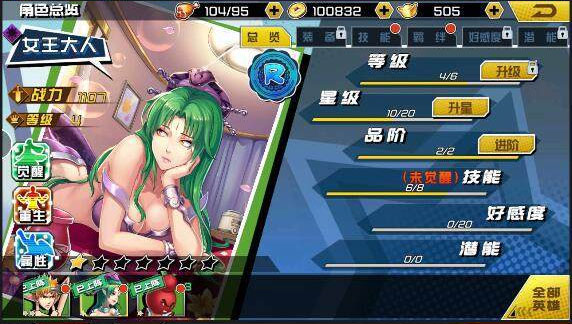 觉得不错的也就是游戏的战斗设定了,熟悉的技能特效,能选择的攻击目标,都让玩家能有不错的战斗体验。但是在角色提升方面就很坑了,十万个冷笑话2中的角色采用的是R、SR、SSR的设定,这样的设定下,居然角色还有星级的设定,还需要给角色升阶,白板升绿色,绿色升蓝色,看的小编头都晕了。
