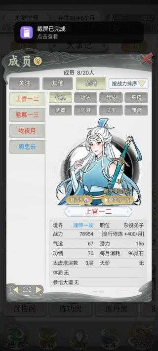 人员培养 — 面对门下几十数百甚至过千的弟子,你毕竟精力有限很难每个人都手把手培养,如何恰到好处地进行传功或洗髓帮助一些潜力股早日实现飞升也不是一件简单的事情,另外你也可以对一些看得上的弟子设置职责委以重任。