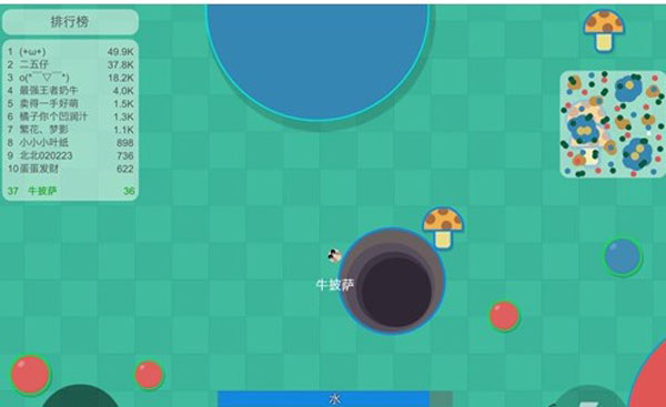 游戏中有黑洞的设定,因为进到黑洞的小动物是无敌的,所以在被追赶的时候最好进入黑洞躲避,利用停留操作躲在黑洞里等危险过去(其实是追你的人无聊走了),所以前期最好的地方就是有水源、红色经验球和黑洞的位置。