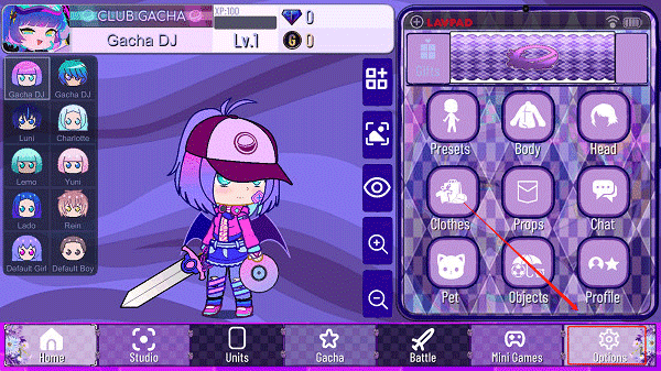 打开加查薰衣草游戏,点击右下角的“Options”设置。
