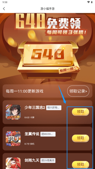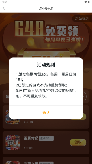 即可查看相关福利游戏并领取648礼包