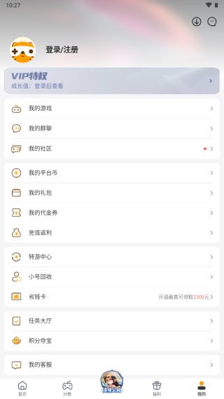 首先打开游小福游戏平台,新用户需使用手机进行登录;