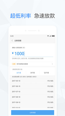 1.额度授信:根据你的信用状况,极速给出信用额度。系统采用先进的大数据风控模型,结合用户的消费习惯、还款记录等多维度信息进行综合评估,确保授信额度既符合用户需求又保持合理可控。授信过程完全自动化,最快30秒即可完成评估。