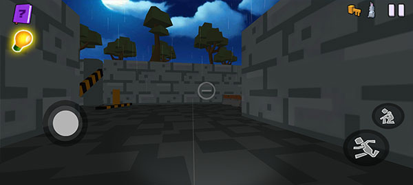 进入一个陌生的地方,到处都透露着废弃和被烧毁,左下角按钮控制移动观察四周,右侧是下蹲潜行和奔跑。