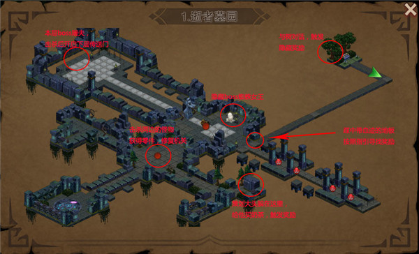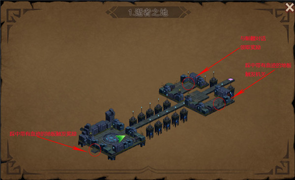 踩中带有血迹的地板触发奖励,与骷髅对话领取奖励,踩中带有血迹的地板触发机关。