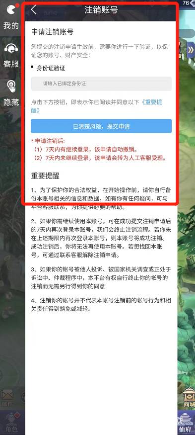 点击该选项后玩家按照流程即可注销账号,如图所示