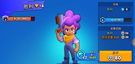 然后当你某个英雄到了紫牌以后,赛季结束时将会根据他的奖杯数来扣除一部分转换为星光点数,赛季每四周轮换一次。当每个赛季结束后星光商店还会出现一个超级宝箱(1500星光点)和一个大型宝箱(500星光点)供你购买。