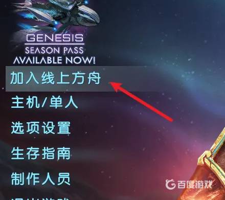 接着则需要好友也打开游戏菜单,选择加入线上方舟选项。