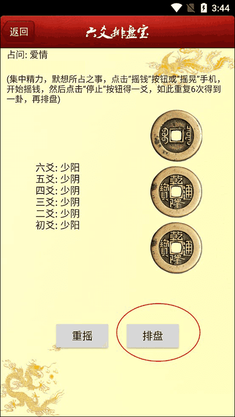 小编选择了交互起卦,选择我们就跟随app的指示摇晃手机。