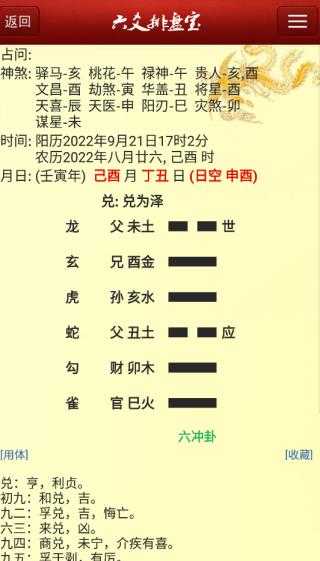 排盘好了我们就可以看见我们卜卦后的结果了。