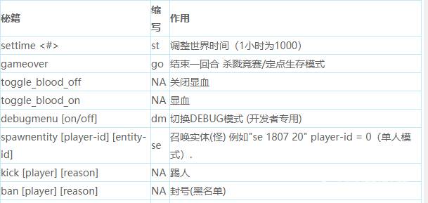 七日杀控制台的代码有很多,玩家首先要在游戏中按“TAB”或者“~”调出控制台,再输入相关指令,即可修改游戏,具体参见下方:
