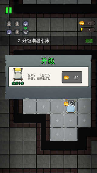 在睡觉的时候玩家们可产生金币,通过金币玩家们可升级门、床、以及装备武器;