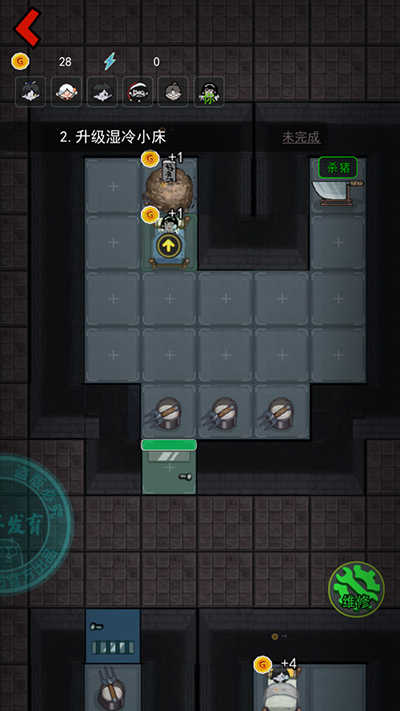开局攒钱升床,第一波25块钱必点床,攒到16块钱升一下2级门。