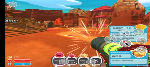 画面高清细腻,展示了一个特别可爱呆萌的史莱姆星球,采用极具现场感的第一人称视角,射击特效特别的炫丽。