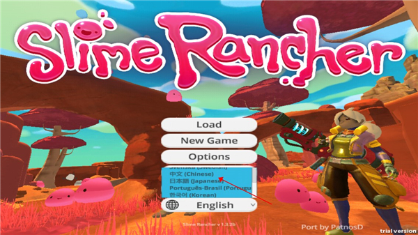 下载安装好史莱姆牧场手机版,点击下方语言选项;