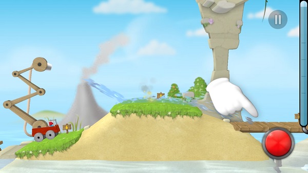 在游戏中玩家将控制可以自由升降的救火小车,通过喷水来消灭村子里因为掉落的燃烧垃圾而引燃的火焰。在消防水资源用完前将关卡的所有火焰消灭即可过关。被引燃的地方往往不是那么好用水喷中,通常都会被平台岩石冰块等障碍物阻挡,玩家需要利用水的冲力,推力甚至是借助场景中的机关道具来将水送到火苗所在的地方。这里就需要玩家灵活运用游戏的物理引擎,合理的使用消防水来达到灭火的目的,最终消防水的剩余量将决定关卡通过的评价和评分。游戏关卡相当的丰富一共有4个场景每个场景分别有12个关卡,共计48个关卡,每一个场景的最后一关还会有一场BOSS战供玩家挑战。玩家需要通过逐一通关关卡的方式来解锁之后的关卡。在关卡通过后会根据玩家所用的水量通关时间等进行一个评分,最终给玩家一个积分以及水滴评价进行一个总结(水滴类似大多游戏的星级评级)最高位五个水滴,最低为一个水滴。在岛屿下方会给出当前岛屿的总积分,可供玩家反复挑战极限积分。趣味十足的玩法配合上游戏设计精妙复杂的关卡,玩起来乐趣十足。游戏难度上控制也相当好,徐徐渐进,很多关卡看似很难在经过尝试和思考之后掌握一定技巧和手法又能轻松解决。通过利用水配合物理引擎来进行游戏这一点让本游戏感觉上跟之前网上大火的《鳄鱼洗澡》有一些类似,同样是益智游戏同样是利用水以及物理引擎来进行游戏,虽然玩法以及核心上有所不同但在游戏主体构思上看到了同样的思路,一些机关的方法和技巧上也有异曲同工之处,可见游戏的开发可能当初就对优秀的游戏进行了借鉴并进行改良的产品。