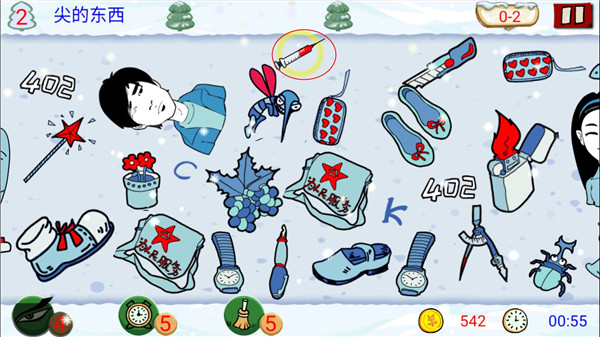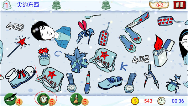 如果一个关卡中,上面出现要求找出的物品为2-3个的时间,在过关卡的时候可以一起找,不要一个找完了之后再找另外一个物品,拉动屏幕也会浪费一定的时间。