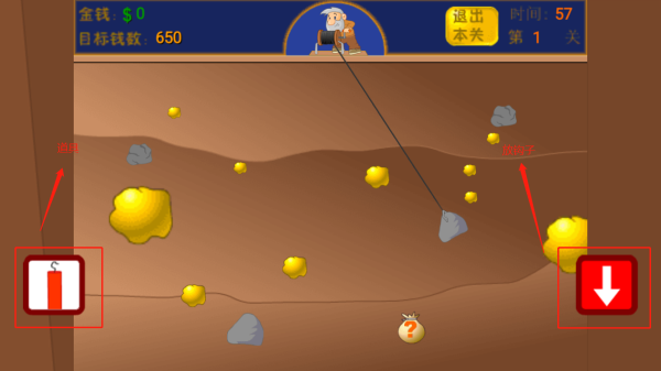 操作简单,在钩子摇摆的过程中,瞄准金子,点击屏幕时即会释出钩去抓取金子。