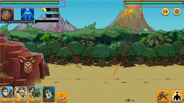 敌方会源源不断的召唤士兵攻击你,你需要点击左下角选择士兵出来应敌对战,上面的金币数量决定你能召唤士兵的等级与数量