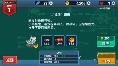 新增一艘飞船,托尼喵塔克号,能力超强,主炮酷炫2.新增护卫舰系统,特定的猫咪驾驶飞船会触发护卫舰,保家卫国就靠他们了。 每艘飞船都有各自不同的护卫舰哦。请多多尝试吧。3.游戏界面调整。4.游戏中触发6连环Combo,会出现一艘载着连环Combo猫的飞船出现帮助战斗。5.新增猫碎片系统,船图纸系统,宝箱系统,背包系统,每日任务系统,礼包系统等。