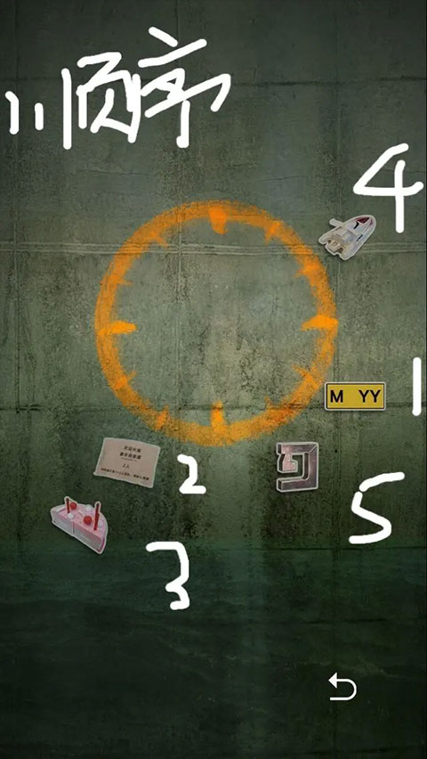 这时候你可以看见个圆,每个物品在物体表面和CG都有直接提示,根据合同上的数字按照钟表逆时针排序密码锁。