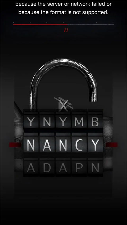 刚进入游戏的锁密码是:NANCY(女主的名字:南茜)