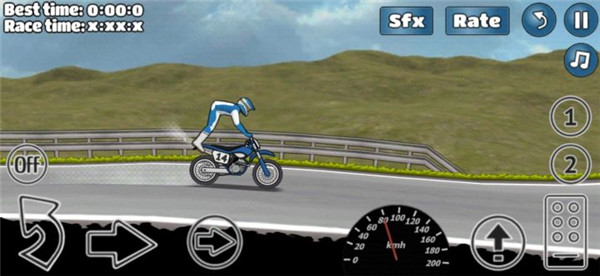 行驶过程中还有各种障碍,玩家需要灵活操控摩托车躲避跳跃
