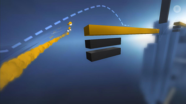 游戏开始后,角色自动开始运行,当玩家遇到需要跳转的地方时,他可以点击屏幕的右边让角色跳跃。