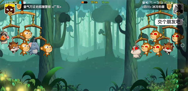 而且在游戏中是由不同的动物的,猴子扔出去的是石头,仓鼠仍出去的蘑菇,命中之后可以使对方直接掉落在树下,猫咪仍的是飞刀,伤害更高,等等。