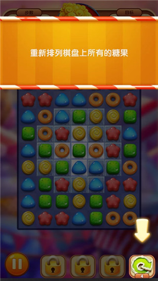 要是一时间没有思路,可以点击右下角重置糖果的排列。