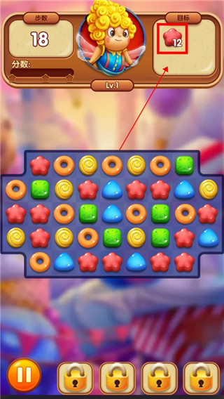 进入游戏,右上角的是本局目标,在步数消耗完之前达成就算过关。