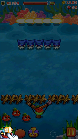 拉动弹弓瞄准怪物即可发射蔬菜;