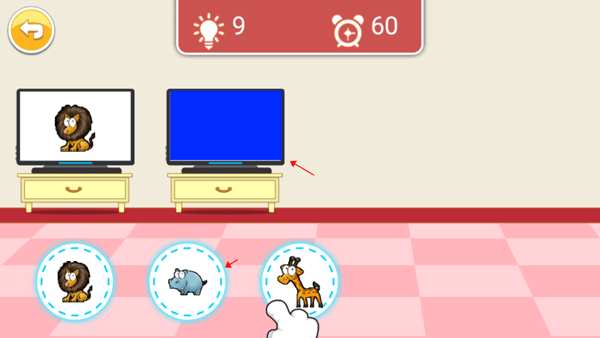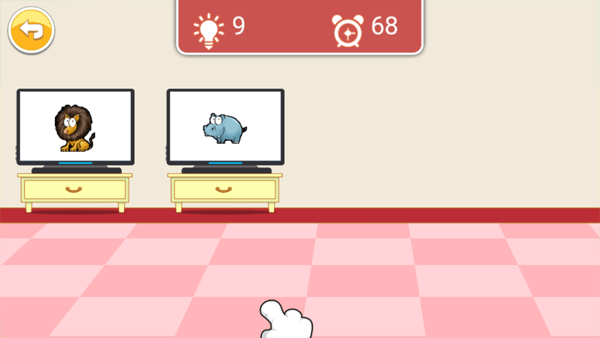 进入记忆大师这个游戏关卡,会看到电视上有两个动物,你只要记住屏幕上是什么动物就可以了。