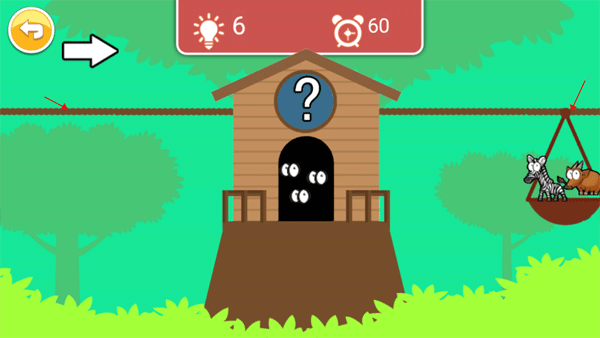 当篮子滑走后,小朋友需要猜猜房子里面有几个小动物,如果猜到了就可以通关了。