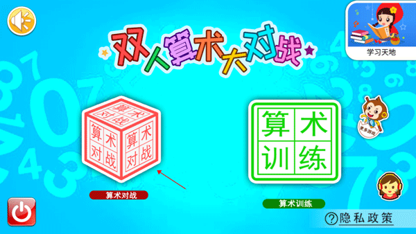 打开游戏后,会看到有两个模块,一个是算术对战,一个是算术训练,点击算术对战。